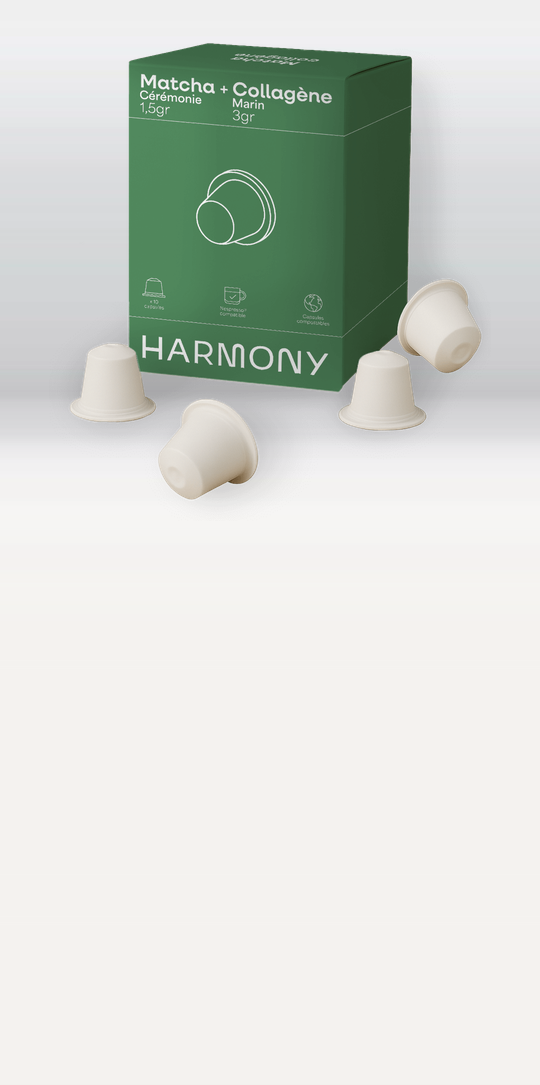 3g de collagène marin + Matcha Cérémonie premium, dans une capsule compatible Nespresso®. Glissez, pressez, buvez — votre peau vous remercie.